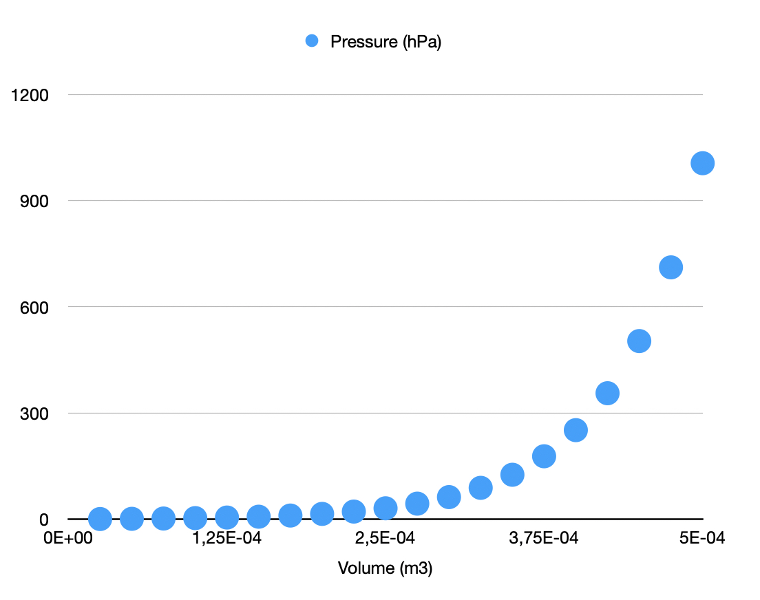 Pressure(hPa) = exp(volume(m3) / capacitance) - 1;